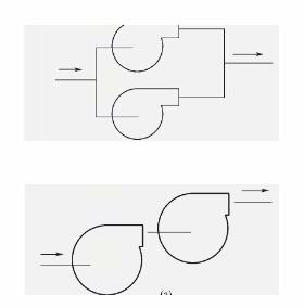在使用离心风机时有时会遇见风机的风量和风压不能满足要求的问题,解决这个问题除了换大点的风机外,可以用两台或两台以上的离心风机联合工作来解决这个问题。而离心风机的联合有两种方式:并联和串联。